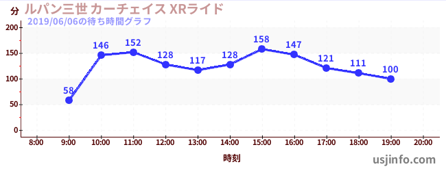 • ルパン三世 カーチェイス XRライド$B$N(B2019年06月06日の待ち時間