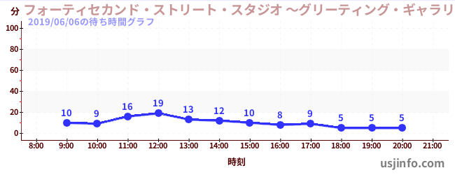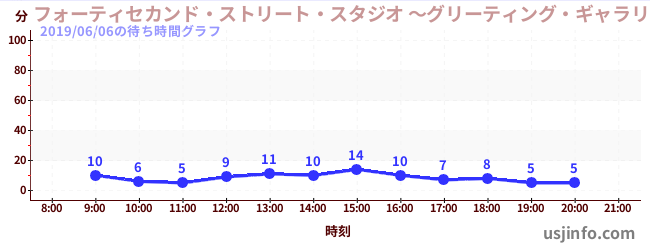 • フォーティセカンド・ストリート・スタジオ ~グリーティング・ギャラリー~ ミニオン$B$N(B2019年06月06日の待ち時間