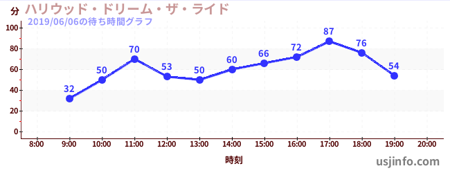 • ハリウッド・ドリーム・ザ・ライド$B$N(B2019年06月06日の待ち時間
