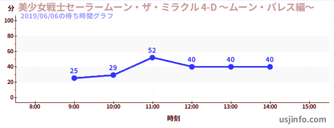 • 美少女戦士セーラームーン・ザ・ミラクル 4-D ~ムーン・パレス編~$B$N(B2019年06月06日の待ち時間