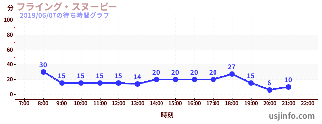 • フライング・スヌーピー$B$N(B2019年06月07日の待ち時間