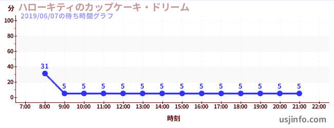 • ハローキティのカップケーキ・ドリーム$B$N(B2019年06月07日の待ち時間