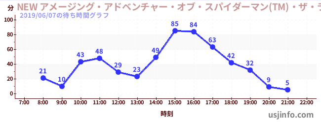 • NEW アメージング・アドベンチャー・オブ・スパイダーマン(TM)・ザ・ライド 4K3D$B$N(B2019年06月07日の待ち時間