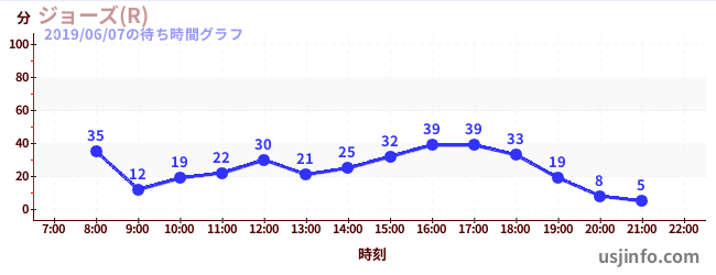 • ジョーズ(R)$B$N(B2019年06月07日の待ち時間