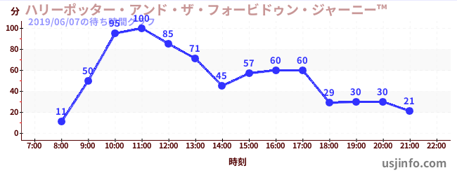 • ハリーポッター・アンド・ザ・フォービドゥン・ジャーニー™$B$N(B2019年06月07日の待ち時間