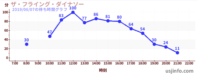 • ザ・フライング・ダイナソー$B$N(B2019年06月07日の待ち時間