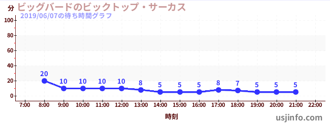 • ビッグバードのビックトップ・サーカス$B$N(B2019年06月07日の待ち時間