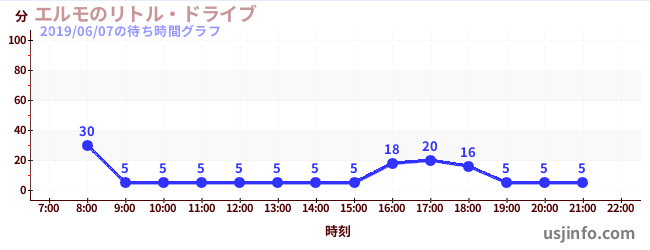 • エルモのリトル・ドライブ$B$N(B2019年06月07日の待ち時間