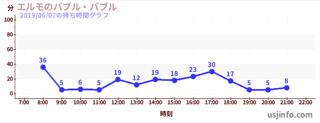 • エルモのバブル・バブル$B$N(B2019年06月07日の待ち時間