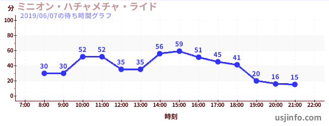 • ミニオン・ハチャメチャ・ライド$B$N(B2019年06月07日の待ち時間