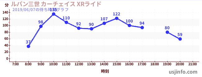• ルパン三世 カーチェイス XRライド$B$N(B2019年06月07日の待ち時間
