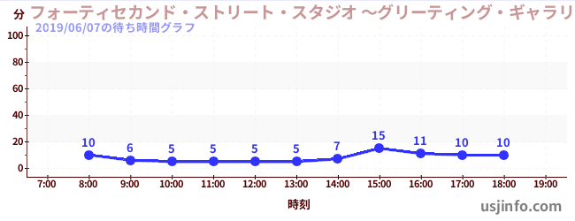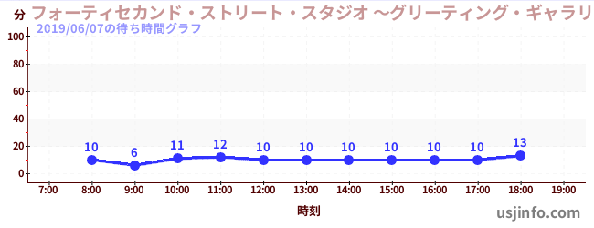 • フォーティセカンド・ストリート・スタジオ ~グリーティング・ギャラリー~ ミニオン$B$N(B2019年06月07日の待ち時間