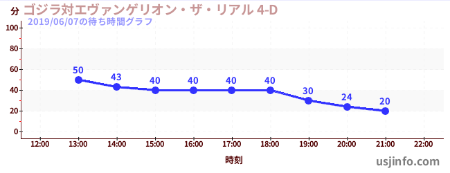• ゴジラ対エヴァンゲリオン・ザ・リアル 4-D$B$N(B2019年06月07日の待ち時間