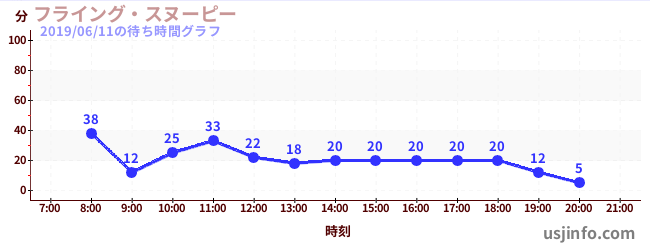 • フライング・スヌーピー$B$N(B2019年06月11日の待ち時間