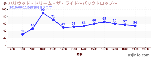 • ハリウッド・ドリーム・ザ・ライド〜バックドロップ〜$B$N(B2019年06月11日の待ち時間