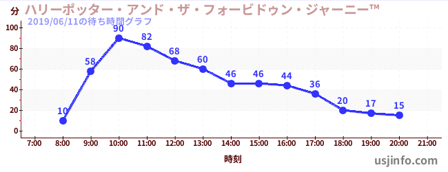 • ハリーポッター・アンド・ザ・フォービドゥン・ジャーニー™$B$N(B2019年06月11日の待ち時間