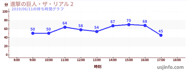 • 進撃の巨人・ザ・リアル 2$B$N(B2019年06月11日の待ち時間