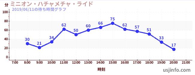• ミニオン・ハチャメチャ・ライド$B$N(B2019年06月11日の待ち時間
