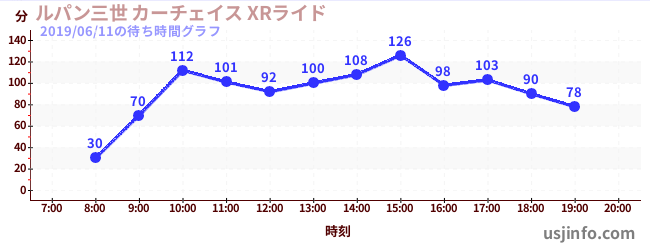 • ルパン三世 カーチェイス XRライド$B$N(B2019年06月11日の待ち時間