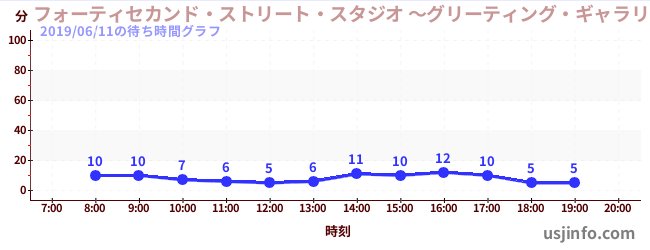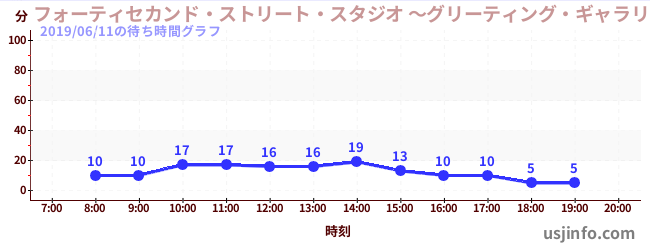 • フォーティセカンド・ストリート・スタジオ ~グリーティング・ギャラリー~ ミニオン$B$N(B2019年06月11日の待ち時間
