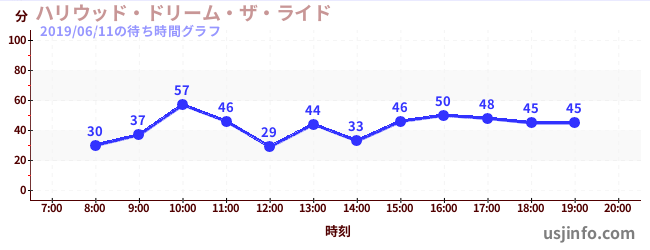 • ハリウッド・ドリーム・ザ・ライド$B$N(B2019年06月11日の待ち時間