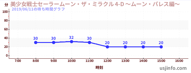 • 美少女戦士セーラームーン・ザ・ミラクル 4-D ~ムーン・パレス編~$B$N(B2019年06月11日の待ち時間