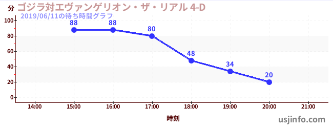 • ゴジラ対エヴァンゲリオン・ザ・リアル 4-D$B$N(B2019年06月11日の待ち時間