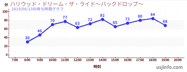• ハリウッド・ドリーム・ザ・ライド〜バックドロップ〜$B$N(B2019年06月13日の待ち時間