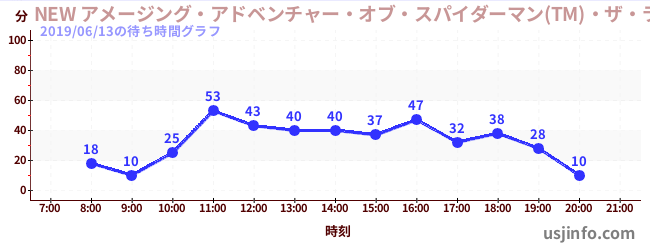 • NEW アメージング・アドベンチャー・オブ・スパイダーマン(TM)・ザ・ライド 4K3D$B$N(B2019年06月13日の待ち時間