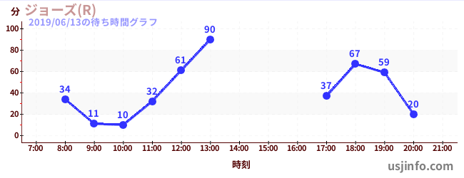 • ジョーズ(R)$B$N(B2019年06月13日の待ち時間