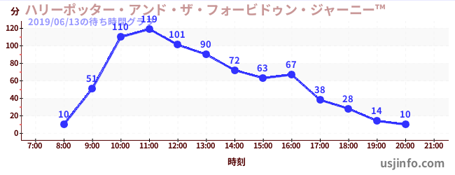 • ハリーポッター・アンド・ザ・フォービドゥン・ジャーニー™$B$N(B2019年06月13日の待ち時間