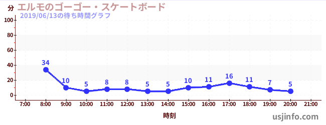 • エルモのゴーゴー・スケートボード$B$N(B2019年06月13日の待ち時間
