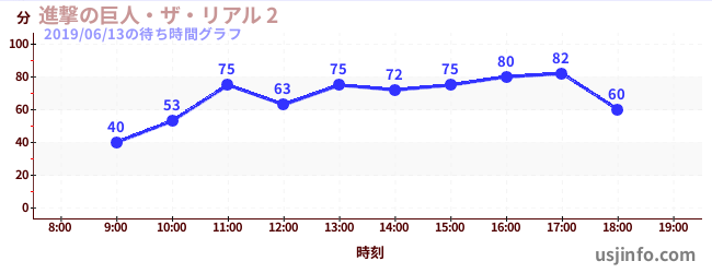 • 進撃の巨人・ザ・リアル 2$B$N(B2019年06月13日の待ち時間