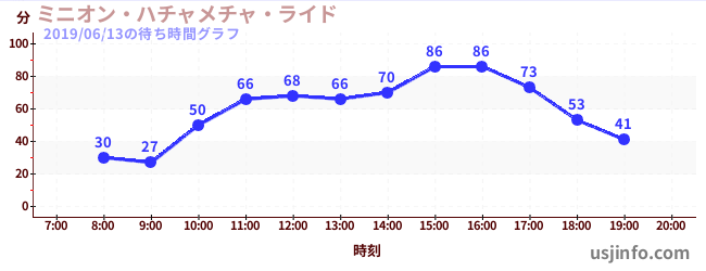 • ミニオン・ハチャメチャ・ライド$B$N(B2019年06月13日の待ち時間