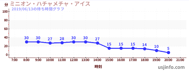 • ミニオン・ハチャメチャ・アイス$B$N(B2019年06月13日の待ち時間