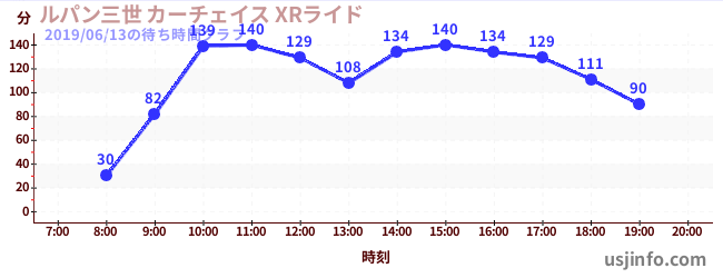 • ルパン三世 カーチェイス XRライド$B$N(B2019年06月13日の待ち時間