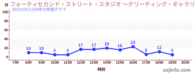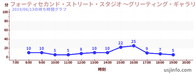 • フォーティセカンド・ストリート・スタジオ ~グリーティング・ギャラリー~ ミニオン$B$N(B2019年06月13日の待ち時間