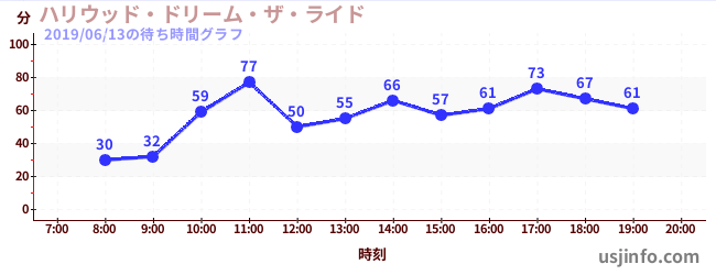 • ハリウッド・ドリーム・ザ・ライド$B$N(B2019年06月13日の待ち時間