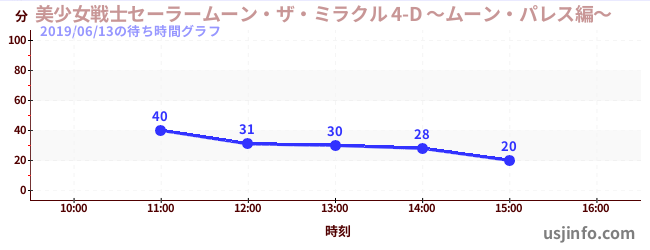 • 美少女戦士セーラームーン・ザ・ミラクル 4-D ~ムーン・パレス編~$B$N(B2019年06月13日の待ち時間