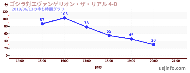 • ゴジラ対エヴァンゲリオン・ザ・リアル 4-D$B$N(B2019年06月13日の待ち時間