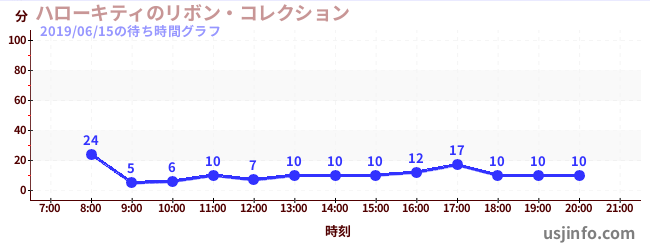 • ハローキティのリボン・コレクション$B$N(B2019年06月15日の待ち時間