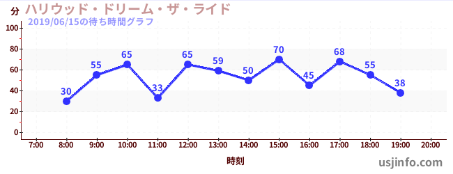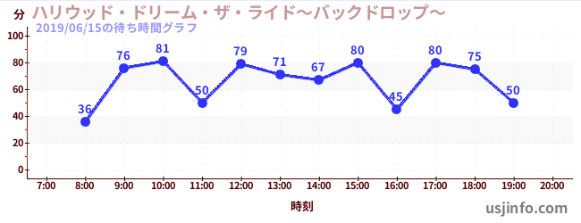 • ハリウッド・ドリーム・ザ・ライド〜バックドロップ〜$B$N(B2019年06月15日の待ち時間