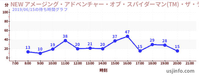 • NEW アメージング・アドベンチャー・オブ・スパイダーマン(TM)・ザ・ライド 4K3D$B$N(B2019年06月15日の待ち時間