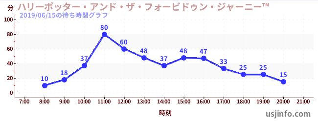 • ハリーポッター・アンド・ザ・フォービドゥン・ジャーニー™$B$N(B2019年06月15日の待ち時間