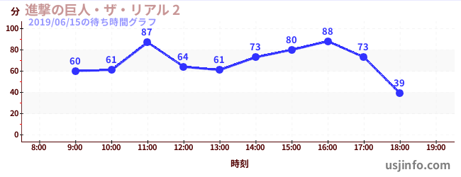 • 進撃の巨人・ザ・リアル 2$B$N(B2019年06月15日の待ち時間