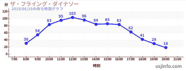 • ザ・フライング・ダイナソー$B$N(B2019年06月15日の待ち時間