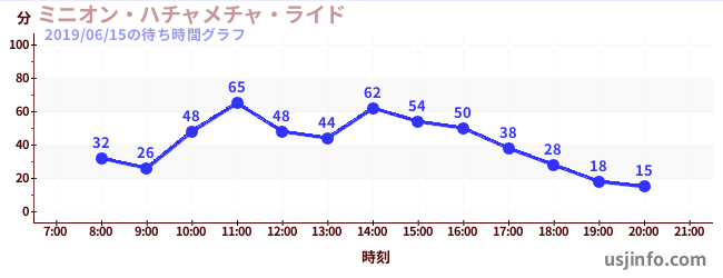 • ミニオン・ハチャメチャ・ライド$B$N(B2019年06月15日の待ち時間