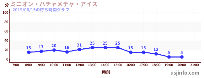 • ミニオン・ハチャメチャ・アイス$B$N(B2019年06月15日の待ち時間