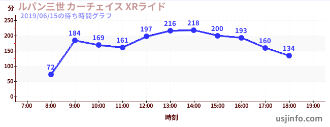 • ルパン三世 カーチェイス XRライド$B$N(B2019年06月15日の待ち時間