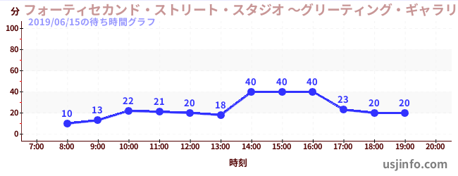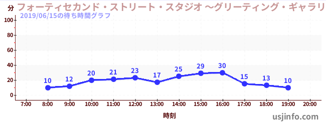 • フォーティセカンド・ストリート・スタジオ ~グリーティング・ギャラリー~ ミニオン$B$N(B2019年06月15日の待ち時間